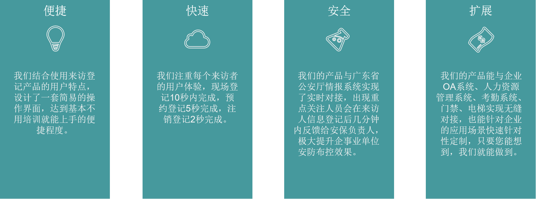 新一代来访登记系统采用双摄像头设计,能有效地解决图像不够清晰及背光问题,同时搭配新一代智能系统使用最新材料,使其运作更高效更稳定。